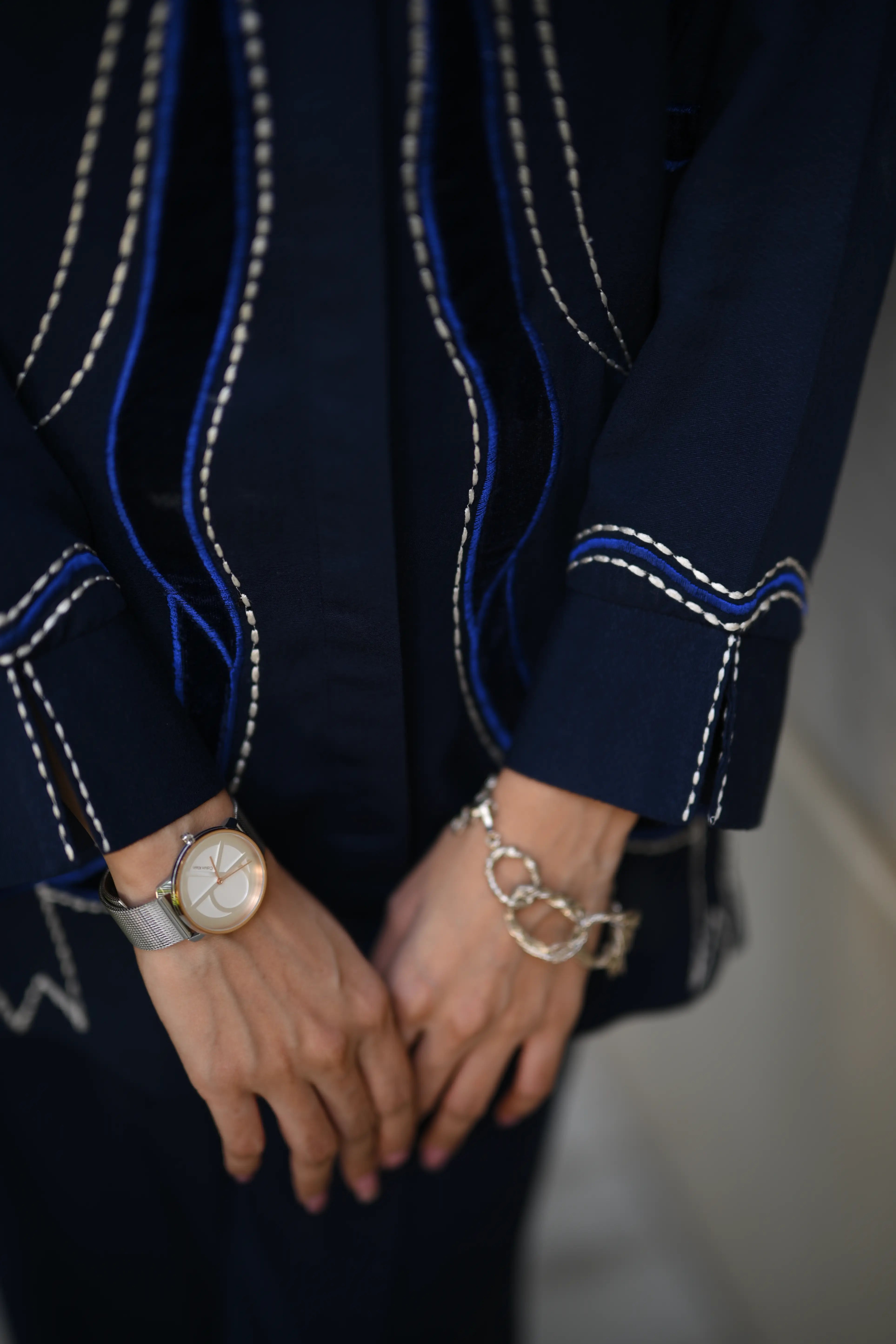 Navy Blue Elegance with Velvet Touch: A Timeless Ensemble.