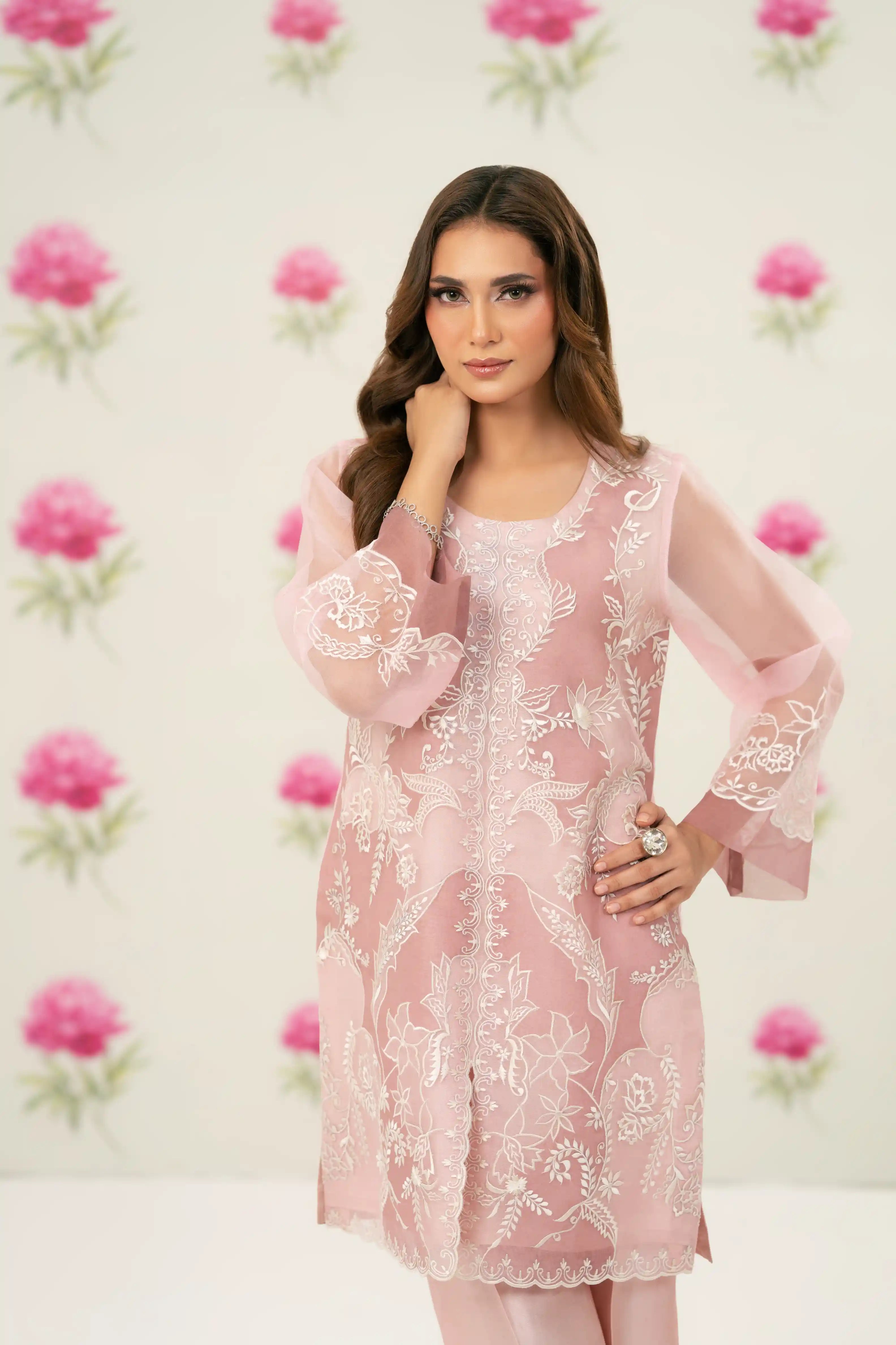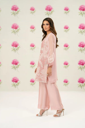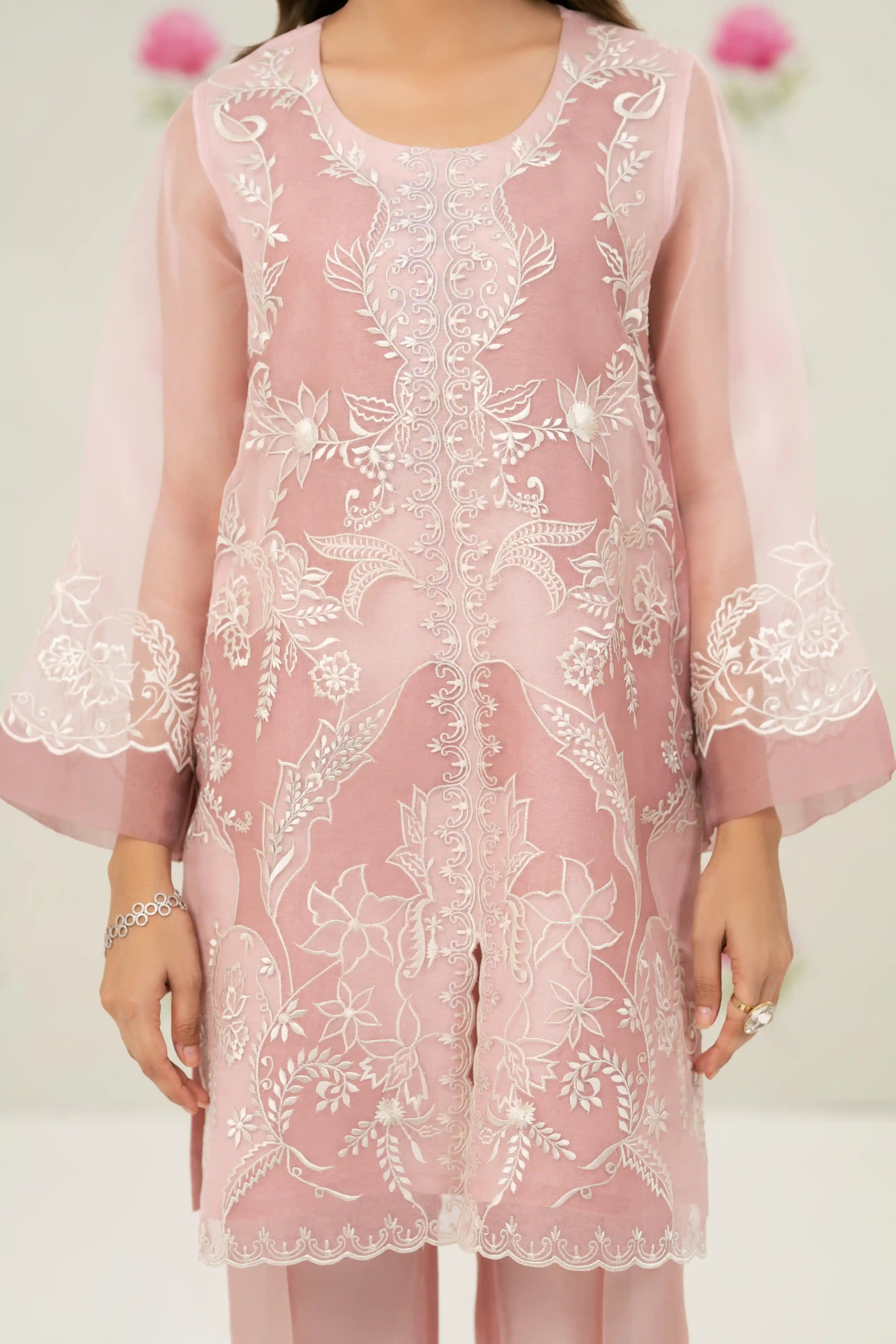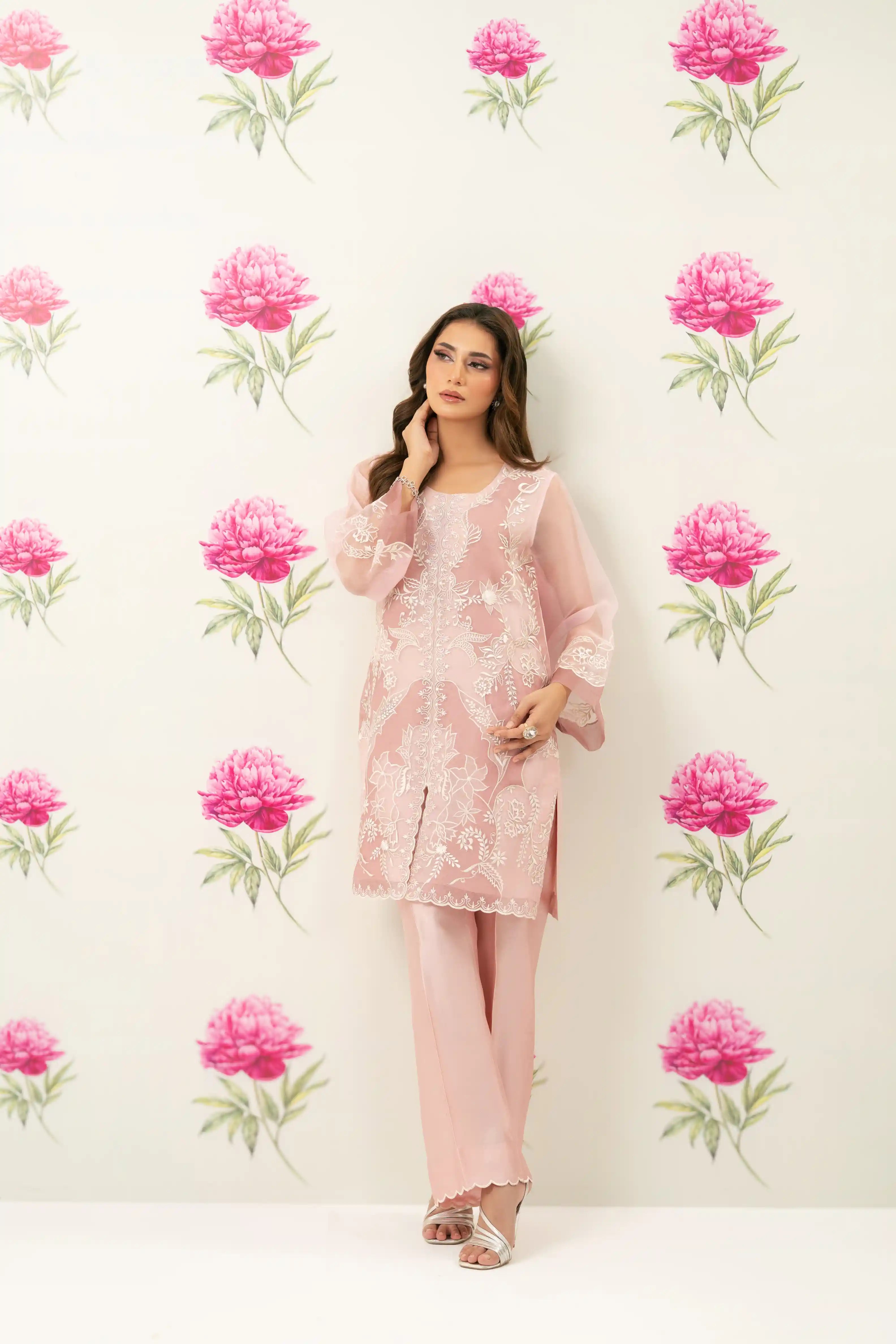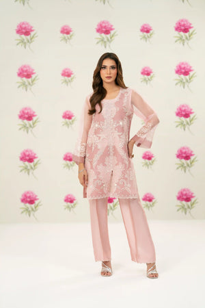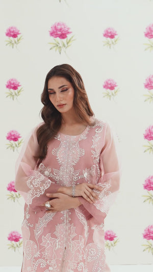 A striking statement in pure kathan organza, this ensemble plays with shades of green to create a fresh, sophisticated palette. The shirt, sleeves, and pants are richly adorned with full-contrast embroidery, showcasing artistry and precision. Appliqué work weaves creativity throughout the design, adding texture and depth. Perfect for parties and evening wear, this look balances elegance with bold modern charm.