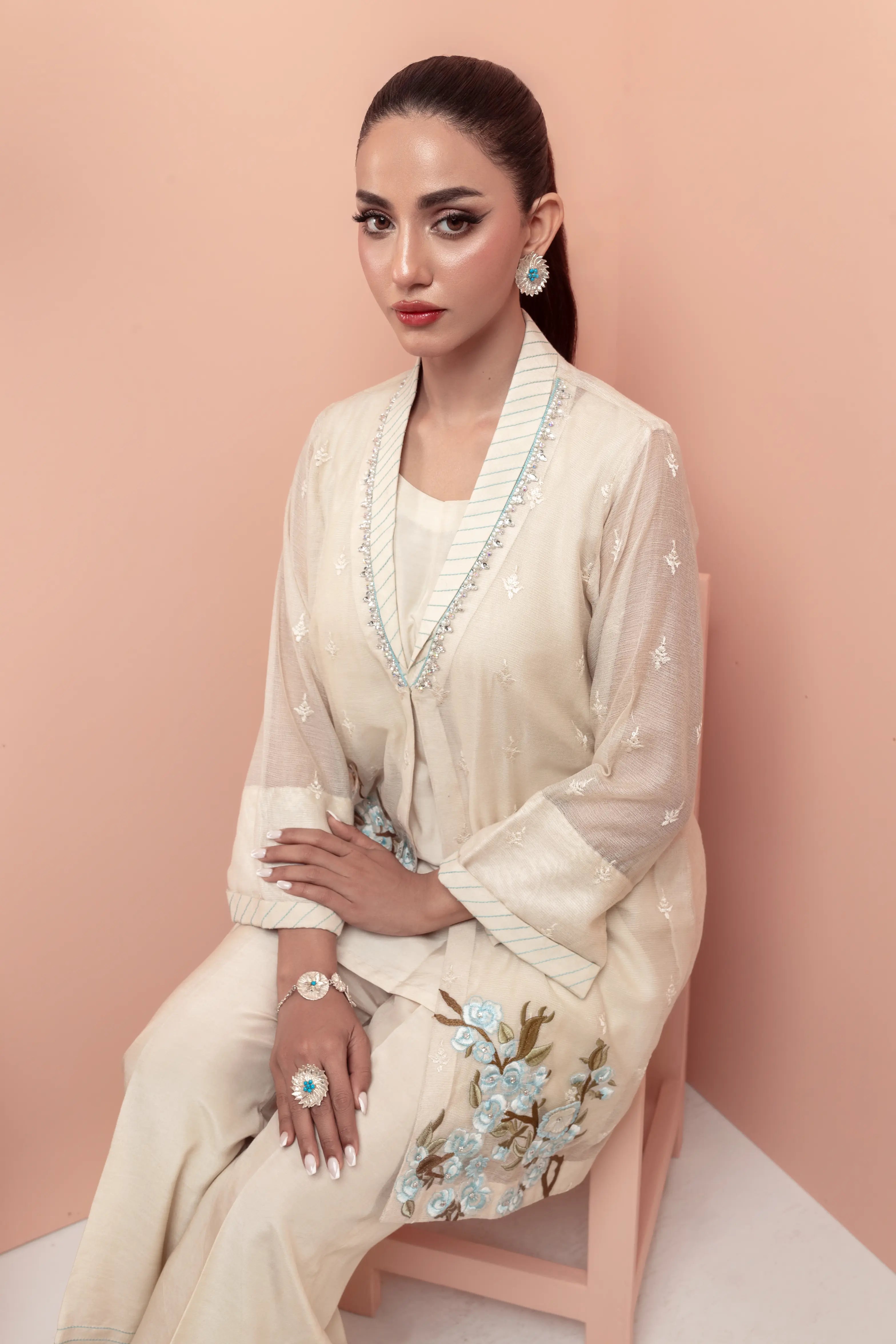 Ethereal elegance blooms with 'Jasmine', a captivating off-white 3-piece ensemble!