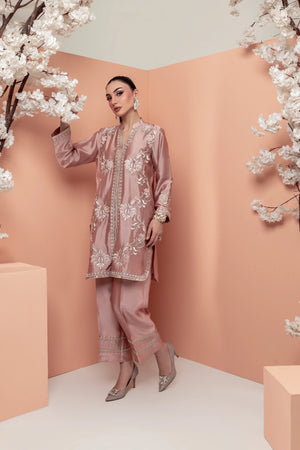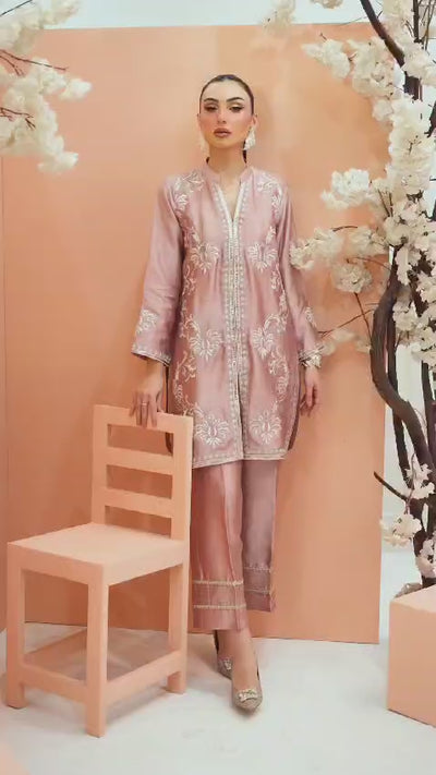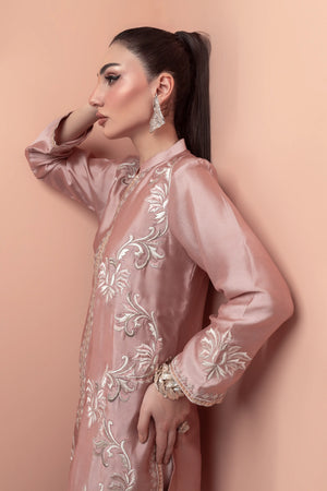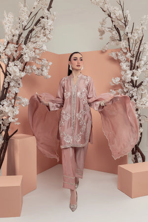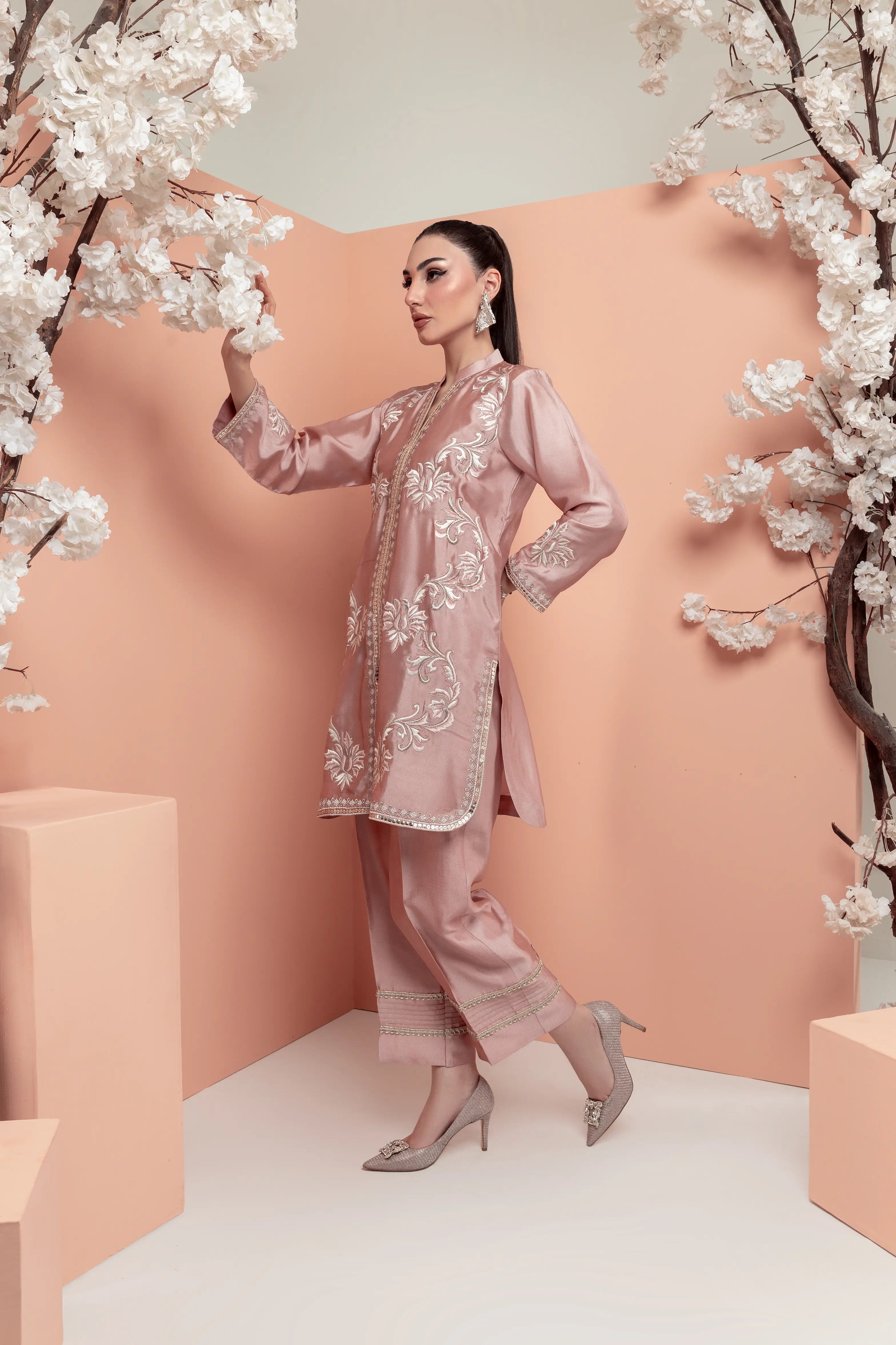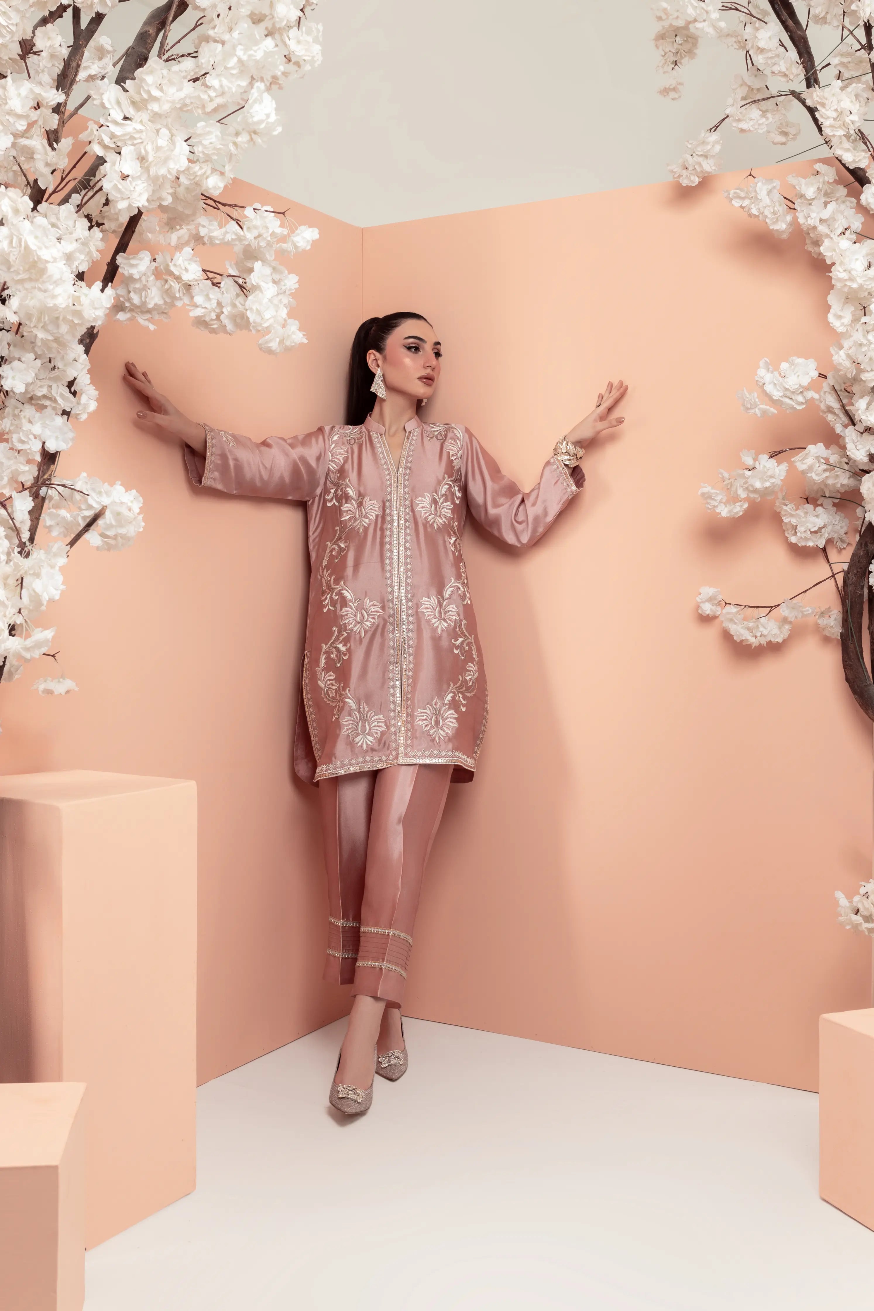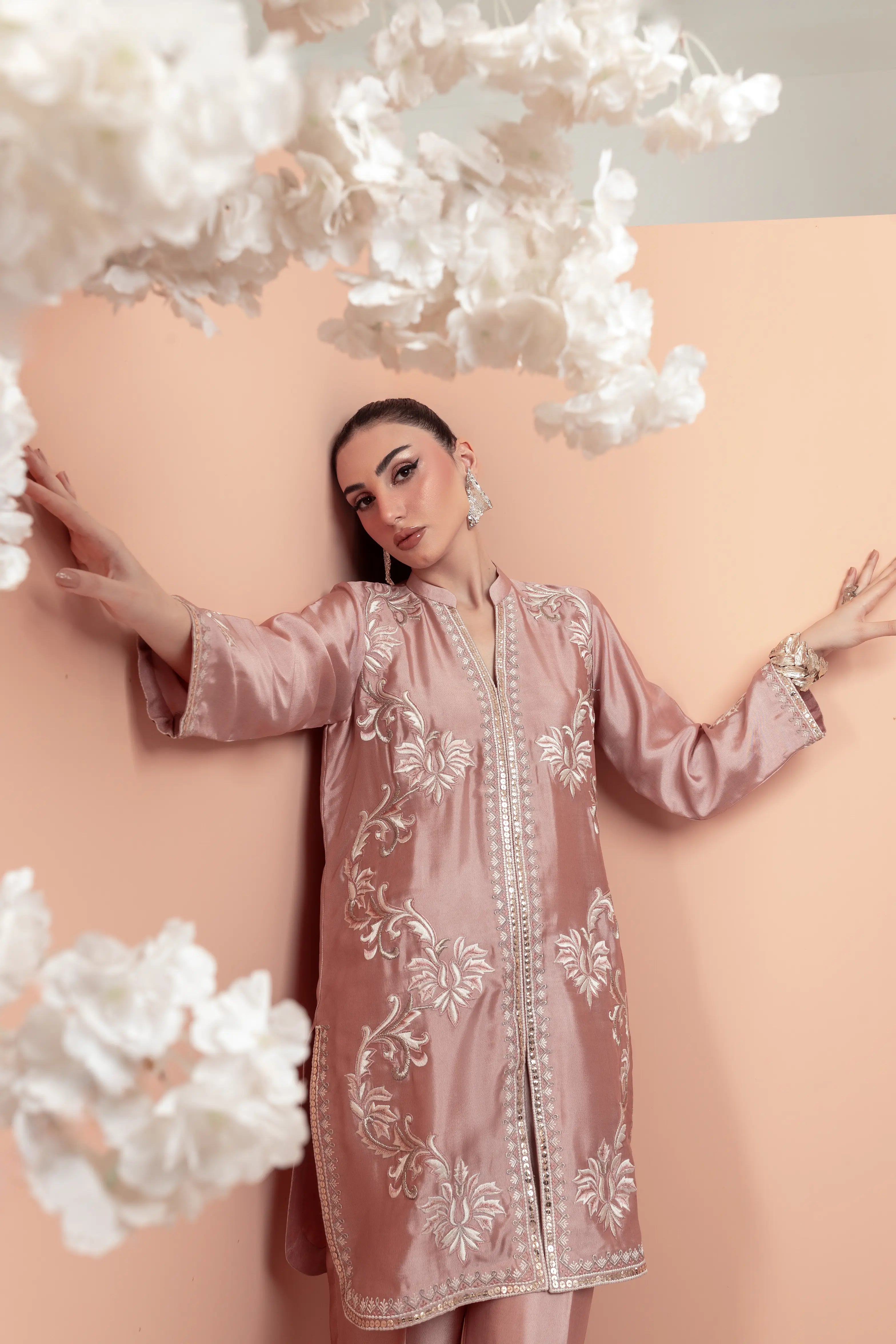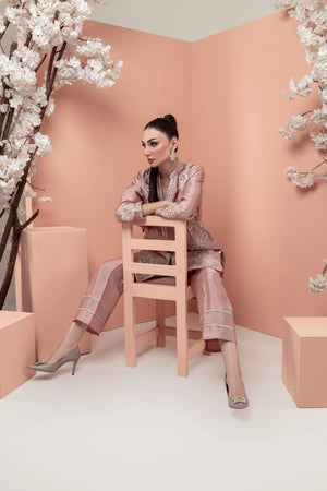 Ethereal beauty unfolds with 'Lotus', a captivating teapink Sheesha silk ensemble!